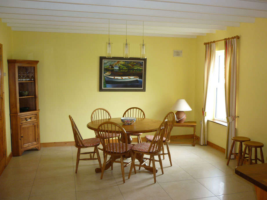 A spacious four bedroom holiday Cottage located in the heart of the popular harbour village of Baltimore. Sleeping 8 in four bedrooms, two twins and two doubles, one with en suite and a family bathroom. The ground floor has a large open plan kitchen dining room with double doors to the Lounge with open fire. There is a ground floor WC and a small lawned rear garden. Du Na Séad is a quiet cul de sac with a large lawned communal area in the centre of this safe family friendly development.