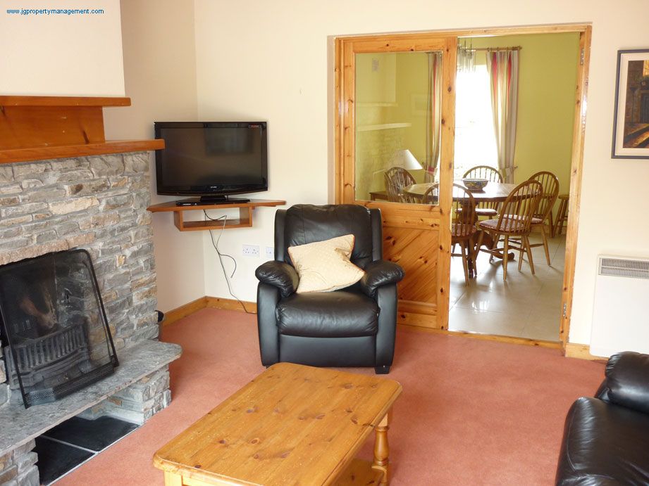 A spacious four bedroom Cottage located in the heart of the popular harbour village of Baltimore. Sleeping 8 in four bedrooms, two twins and two doubles, one with en suite and a family bathroom. The ground floor has a large open plan kitchen dining room with double doors to the Lounge with open fire. There is a ground floor WC and a small lawned rear garden. Du Na Sead is a quiet cul de sac with a large lawned communal area in the centre of this safe family friendly development.