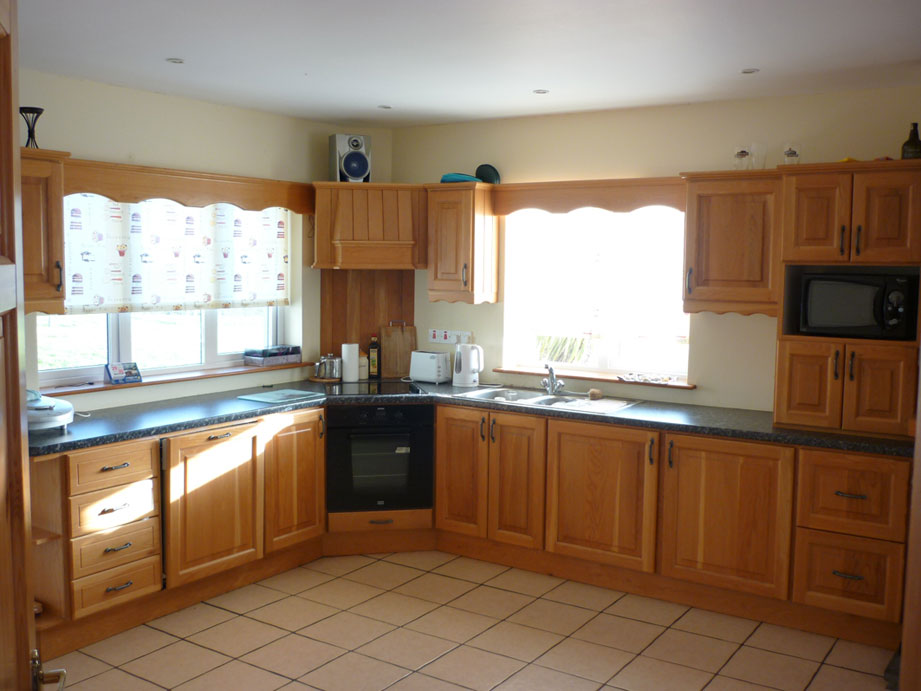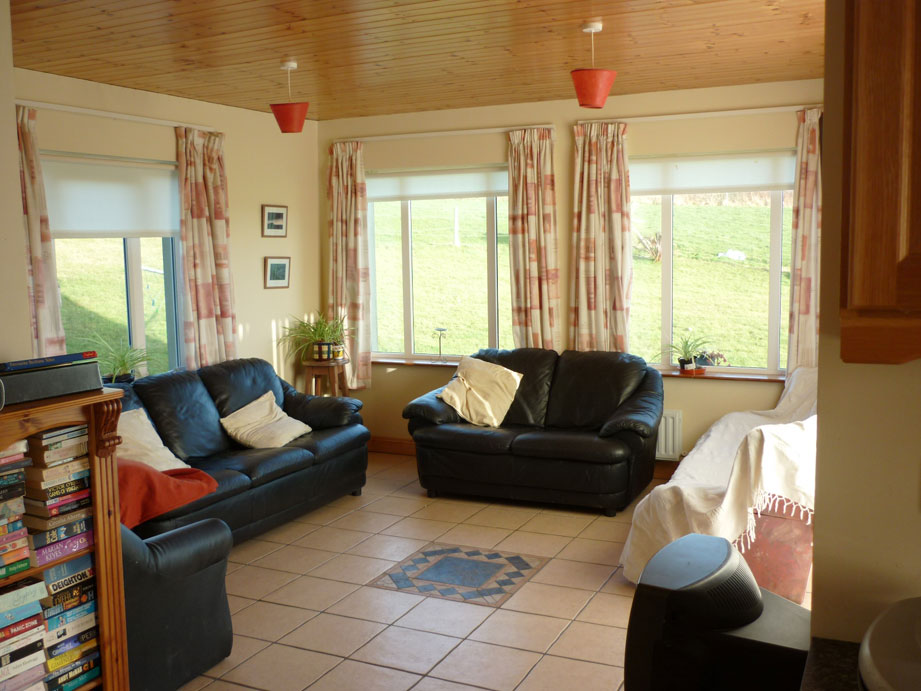 An exceptional dormer bungalow located near the coast approx 5km south west of the scenic fishing village of Union Hall in West Cork. Arranged with four bedrooms which can sleep up to ten people. This modern property is equipped with all the conveniences expected in a quality home and includes a fully fitted kitchen with annexed sun-room offering amazing views over Curragillihy. The large sitting room is fully furnished and comes complete with 28″ TV and DVD player. There is a double bedroom with en-suite on the ground floor and three spacious bedrooms on the first floor, master with en-suite. You will be wanting for nothing with this property!