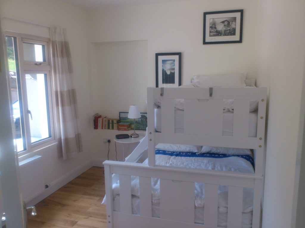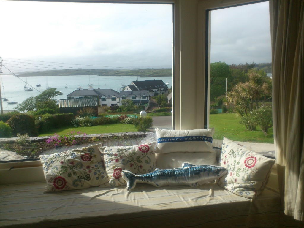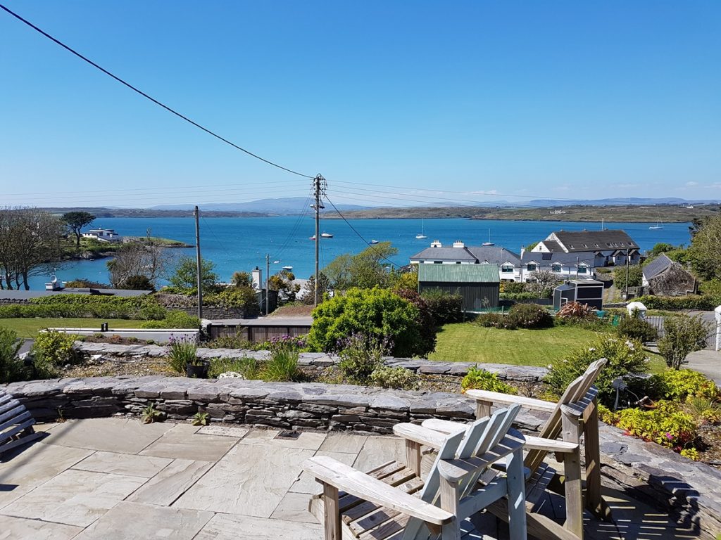A fantastically located three bedroom holiday cottage with fabulous views over Baltimore Harbour. The property has just been fully refurbished to a very high standard and benefits from an adjacent studio Apartment available to guests at additional cost (please ask). The property has a large open plan luxury fitted kitchen dining room with French doors to a terraced patio offering outstanding views over the harbour. A separate lounge with window seat and log stove also benefits from the sea views. There are three double bedrooms sleeping 7 persons, master with en suite and second bedroom with single bunk over the double and a fine family bathroom. Outside there is a private drive with ample parking to the rear and an enclosed lawned rear garden. The adjacent studio apartment is located on the first floor over a garage and has a large double bedroom open plan with a small kitchenette, harbour views and an en suite shower room. The apartment would not be rented separate to the house but would be ideal if more space was required. Free WIFI included. Highly recommended.